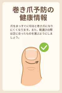 足の指で地面を蹴るように歩くと、爪に自然な力が加わり、巻き爪予防につながります。